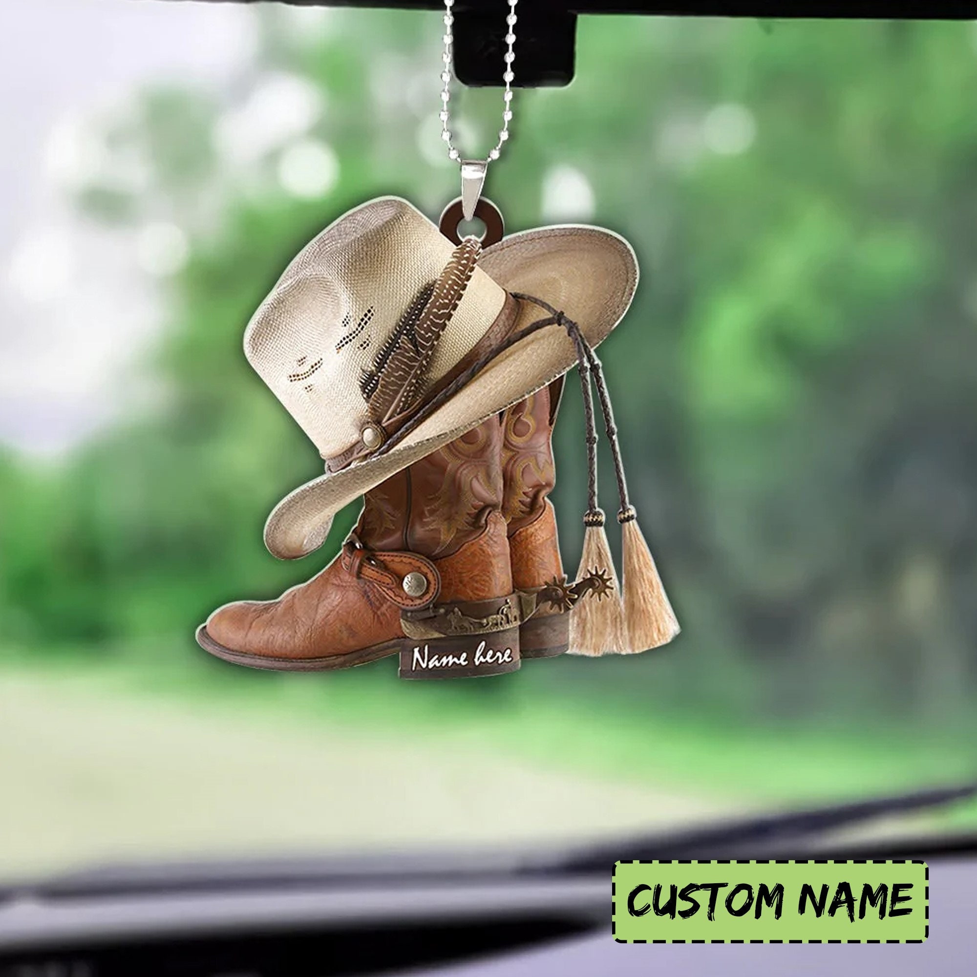 Boots And Hat Cowboy Personalized Car Ornament Flat Acrylic Etsy India