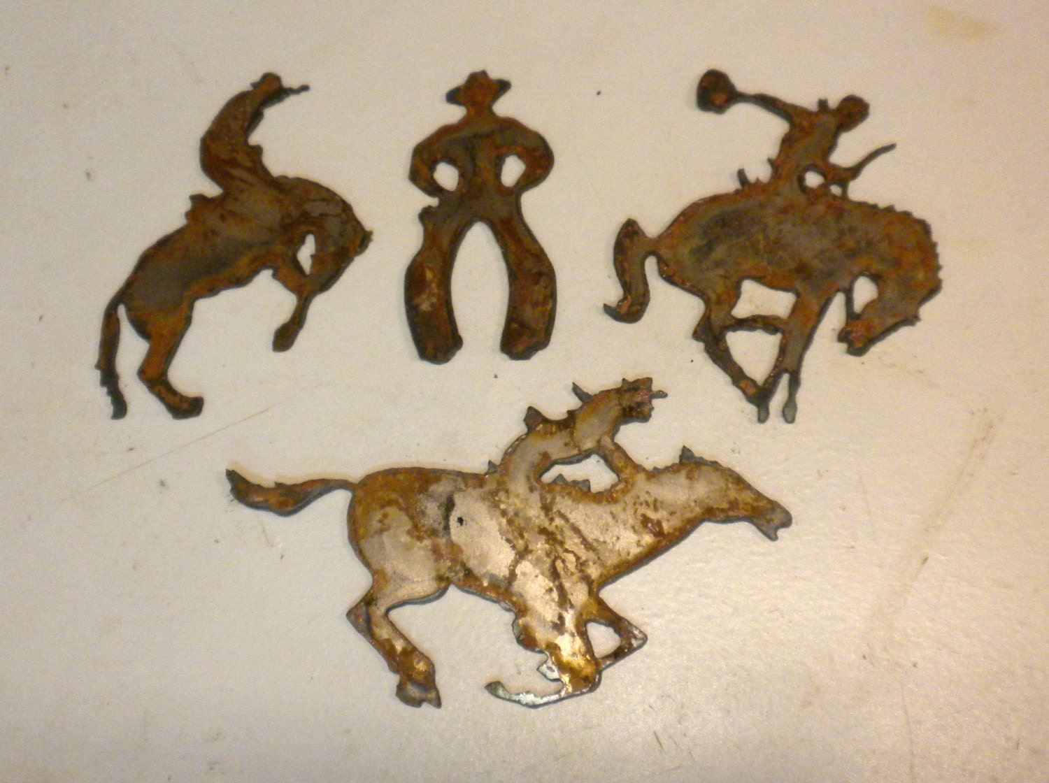 Lot Set Of 4 Rusty 3 5 Inch Cowboy And Horse Bucking Running Etsy Finland